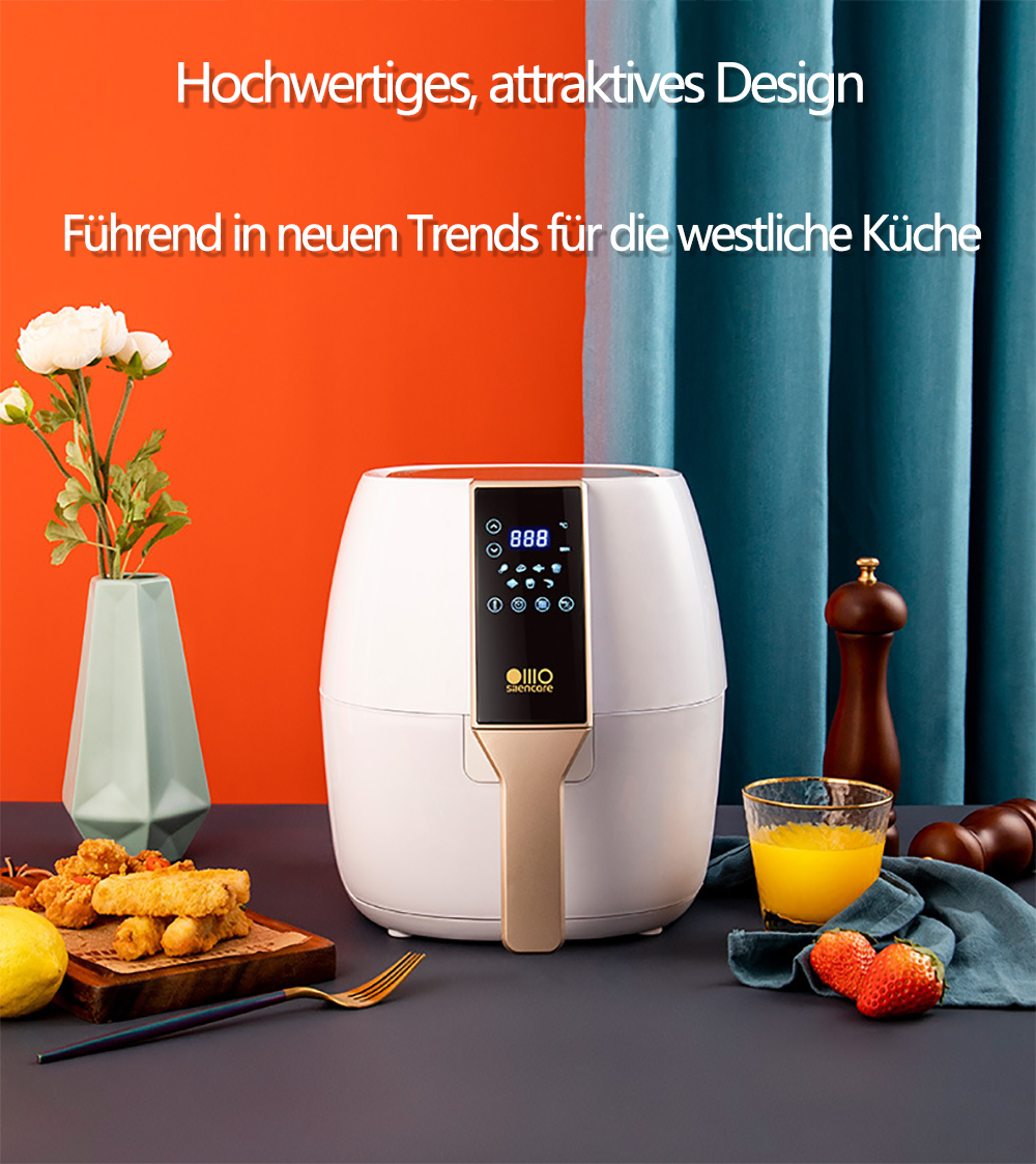 Thanks to its slim and modern design, the air fryer fits perfectly into any kitchen. From now on, cook low-fat and crispy dishes for the whole family!