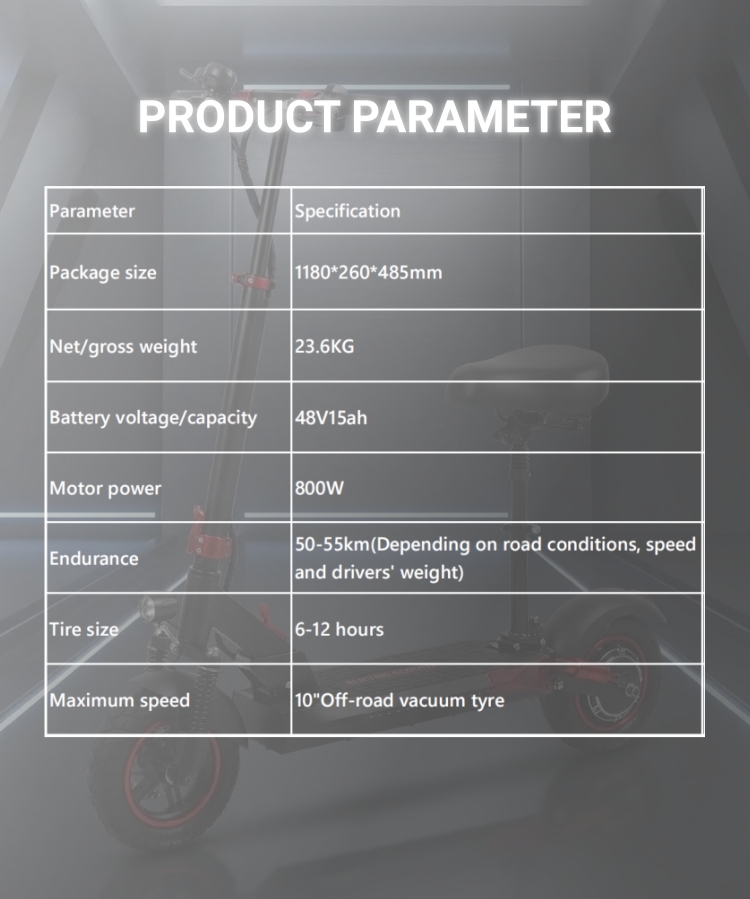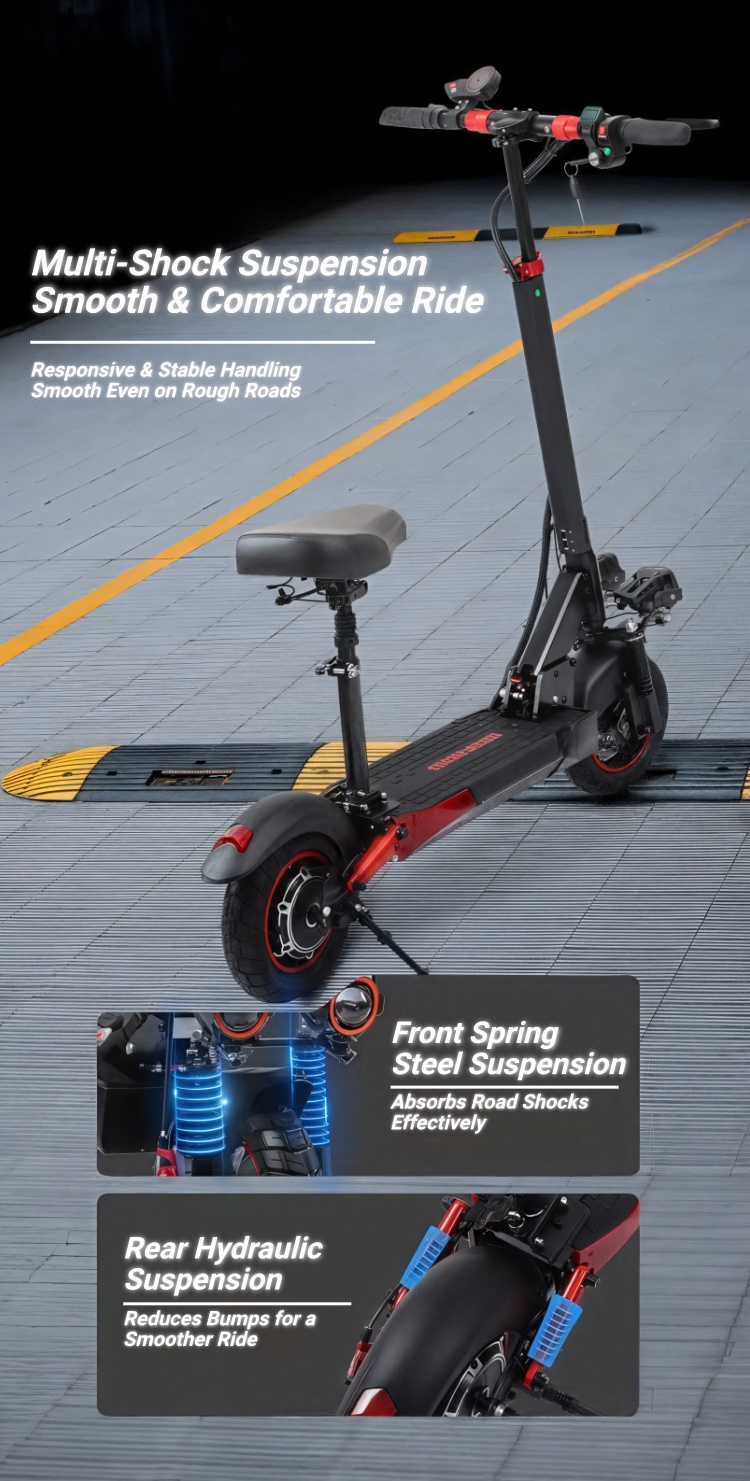 800W High-Power Off-Road Electric Scooter with Seat | 10" Puncture-Resistant Tires | Foldable