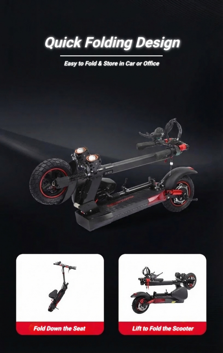 High-End Electric Scooter for Adults – 6000W Dual Motor, 11" Off-Road Tires, Quick Fold Design