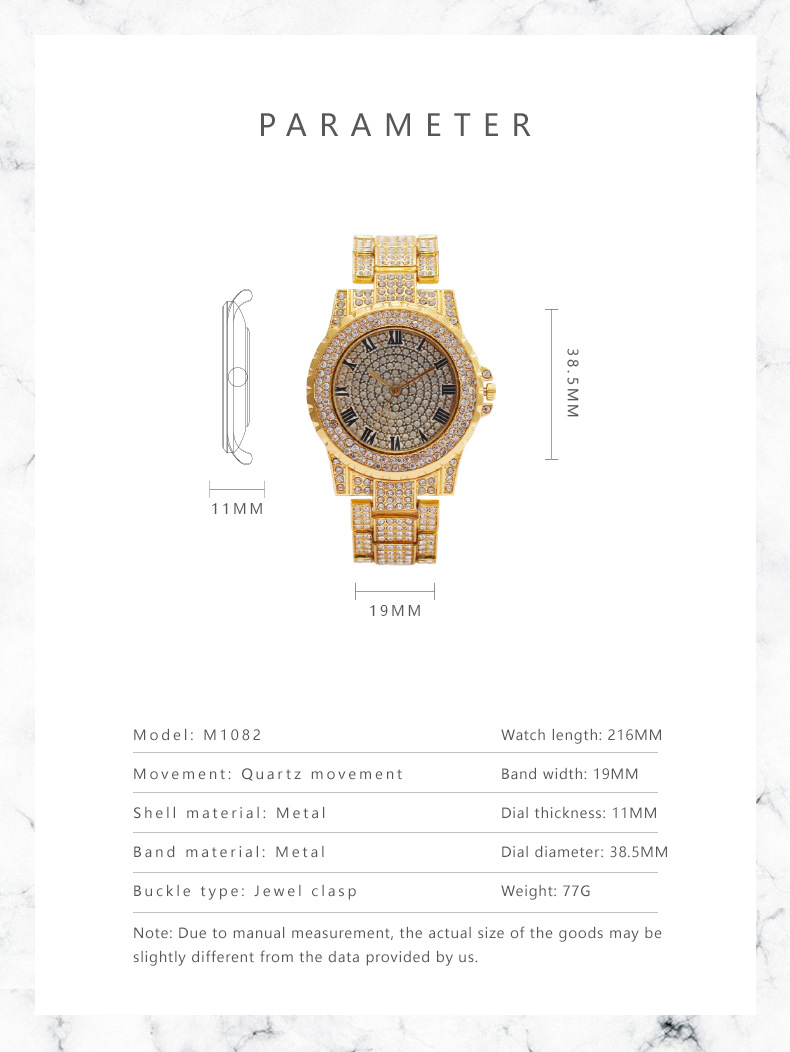 Luxury Rhinestone Women’s Watch – Roman Dial Quartz Wristwatch