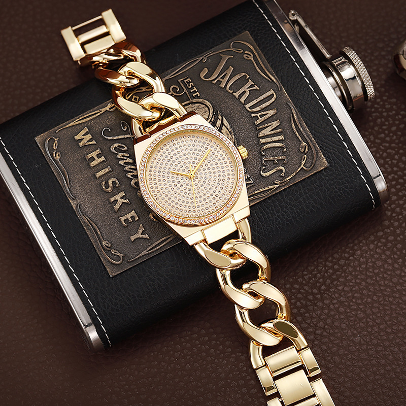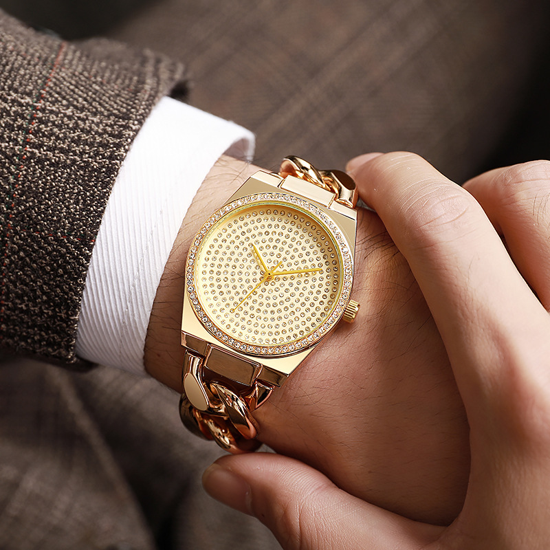 New Full Crystal Men’s Watch – Skeleton Dial Quartz Bracelet Watch