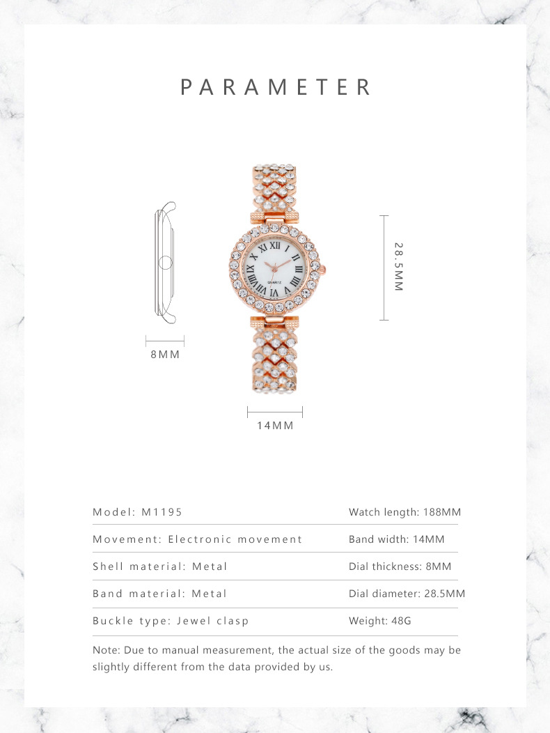 Fashion Crystal Women’s Watch – Roman Dial Quartz Bracelet Watch