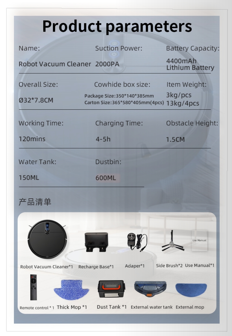 Robot home dry and wet metal vacuum cleaner app control with automatic charging function